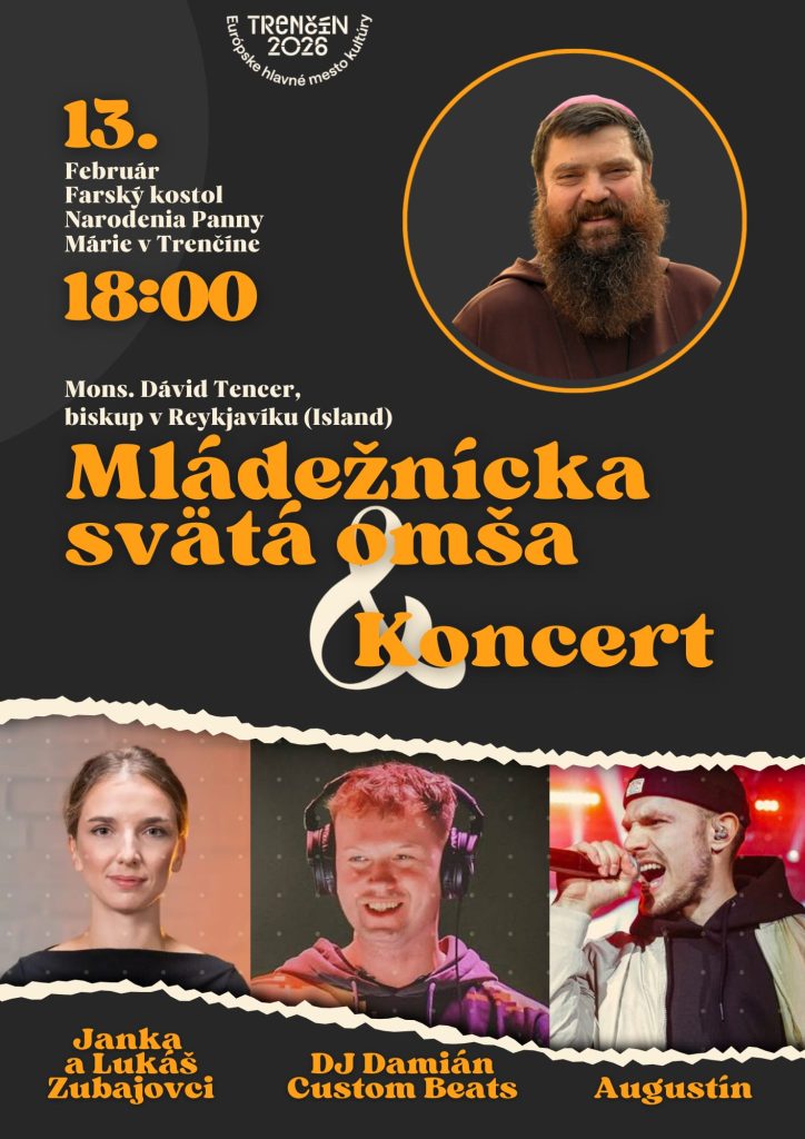 Vo farskom kostole (pod hradom) v piatok 13.2. o 18:00 bude mládežnícka sv. omša: hlavný celebrant Mons. Dávid Tencer, biskup z Rejkyavíku (Island), teší sa na vás v kázni.